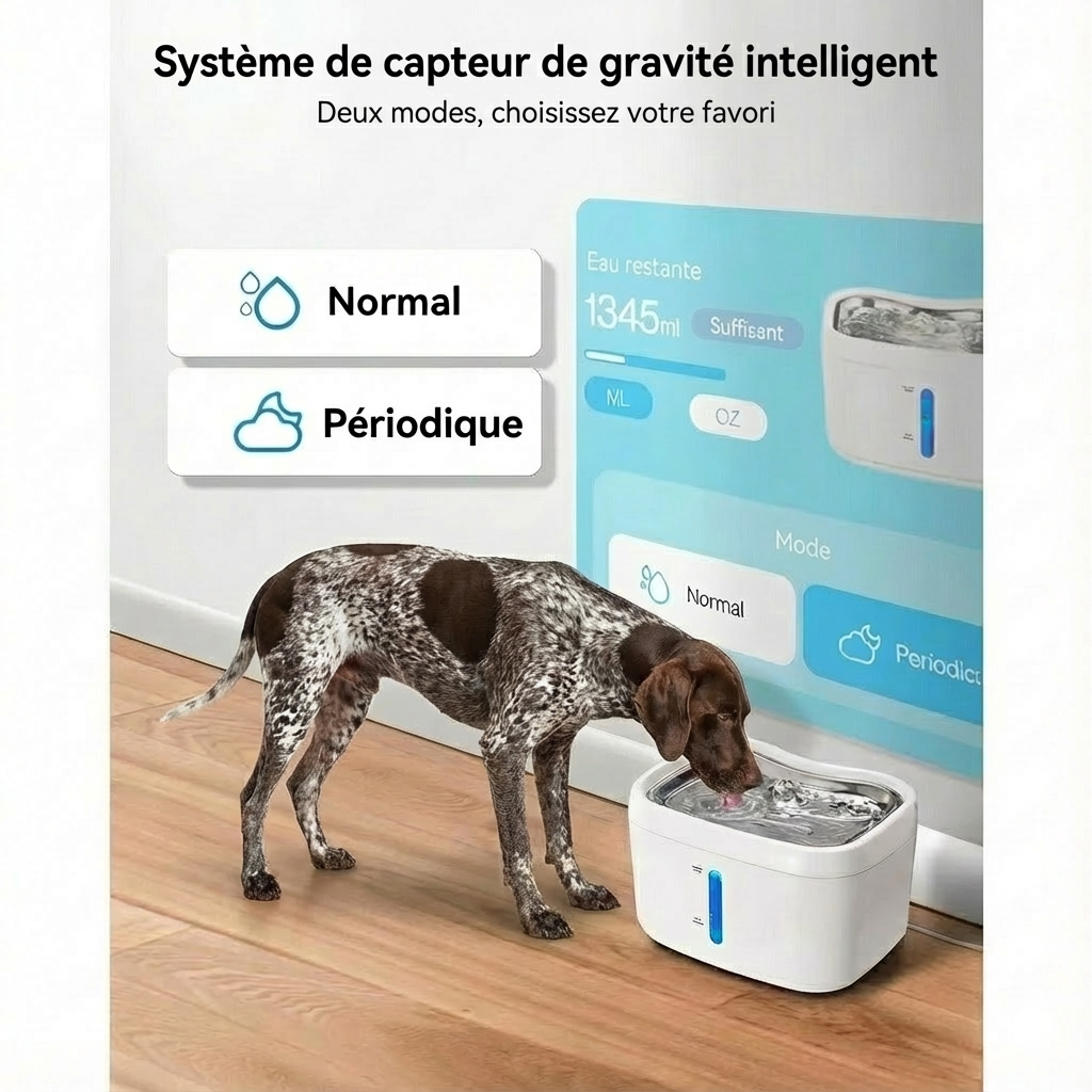 L'eau qui coule suit l'instinct naturel de votre animal.
